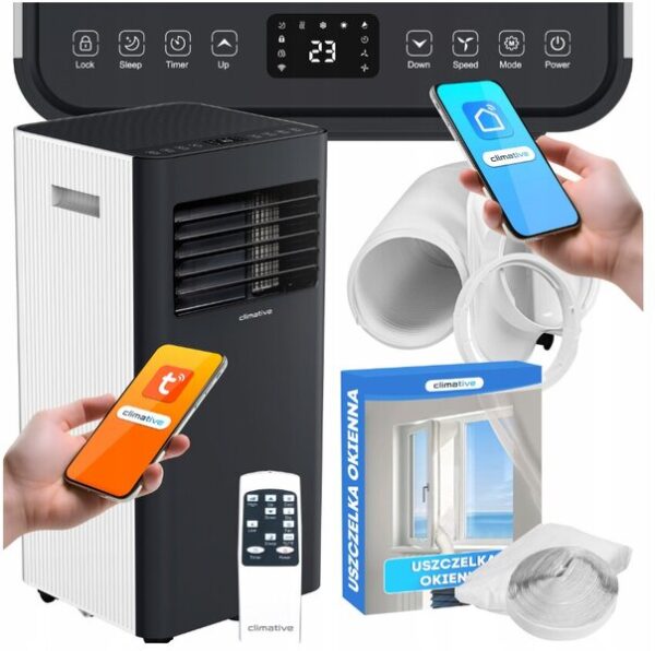 Climative DUO on 3 kW võimsusega kaasaskantav õhukonditsioneer WiFi ühendusega, mis paistab silma eriti vaikse töörežiimiga. Sobib ideaalselt magamistuppa või kontorisse, kus müratase on oluline. WiFi funktsioon võimaldab seadet juhtida nutitelefonist. Pakub jahutust, ventilatsiooni ja niiskuse eemaldamist.